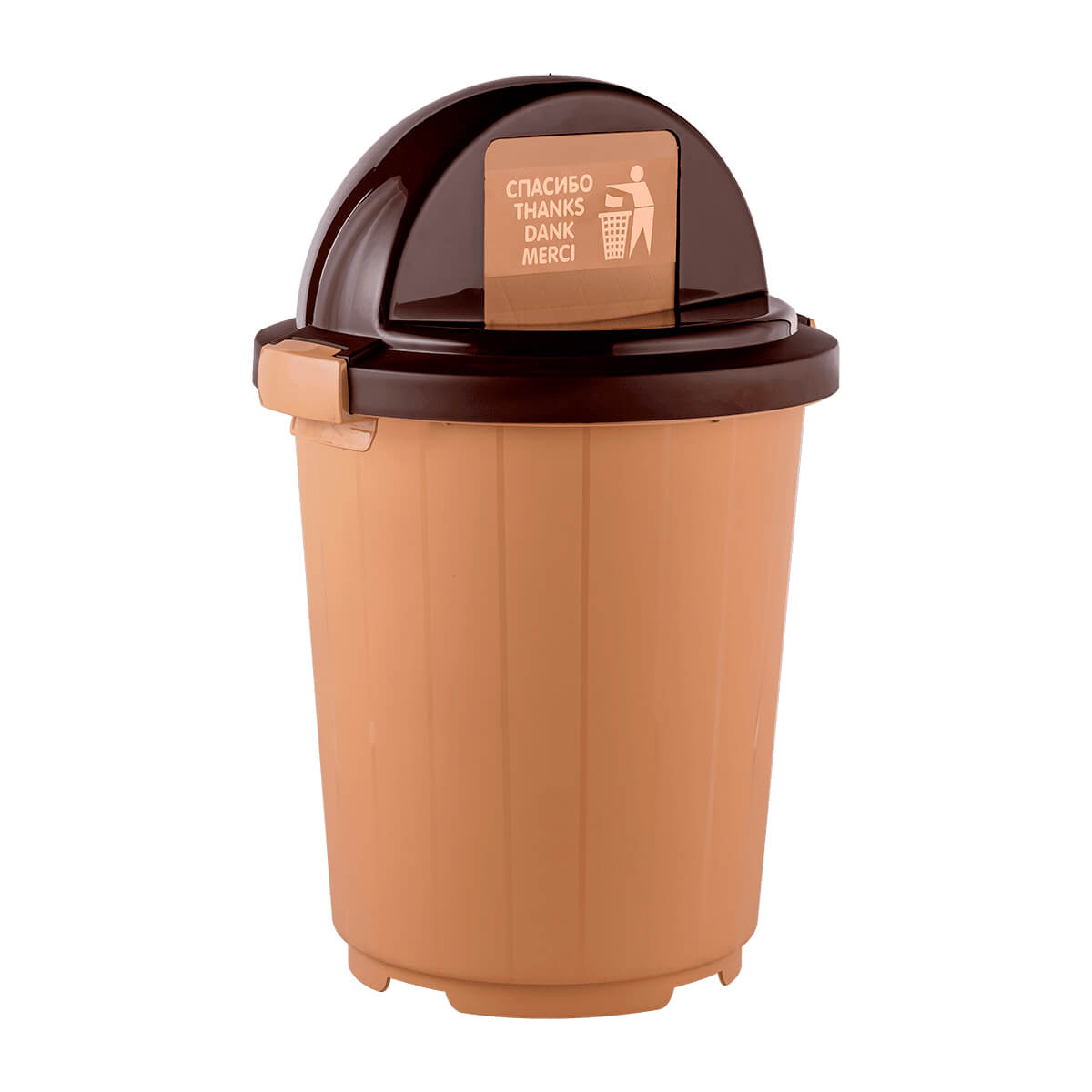 Выберите бежевый мусорный бак с крышкой-клавишей на колесах для эффективного управления отходами с легкостью и стилем в вашем доме, офисе или любом другом пространстве.