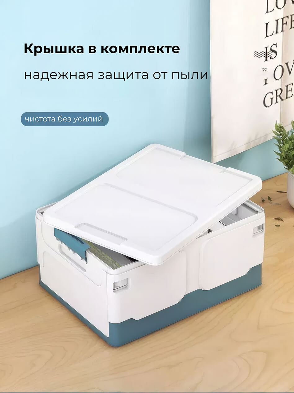 Пластиковая коробка с крышкой защищает содержимое от пыли и влаги, а прочная конструкция гарантирует надежность и долговечность. Складной контейнер легко складывается, экономя место, когда не используется, а удобные ручки обеспечивают комфортную переноску.