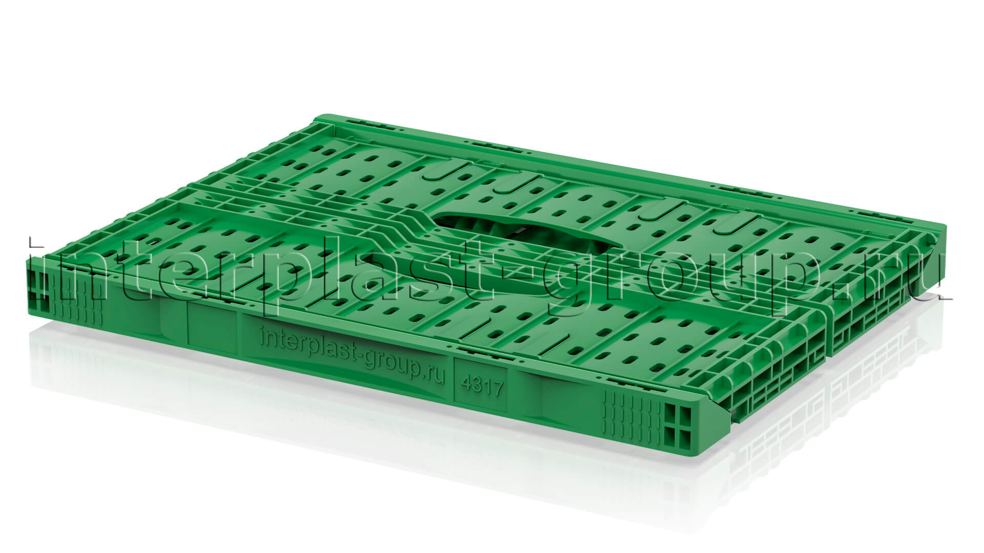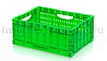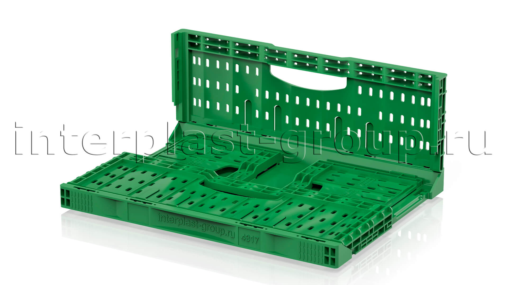 Складные ящики разработаны и спроектированы для хранения и перемещения плодо-овощных культур как внутри производства, так и между торговыми точками и складами. Благодаря функции складывания значительно экономят место при использовании в качестве возвратной тары. Перфорированные стенки обеспечивают сохранение свежести и сочность продуктов перфорации абсолютно на всех стадиях логистики. Штабелируются на паллетах 1200х1000 и 1200х800.