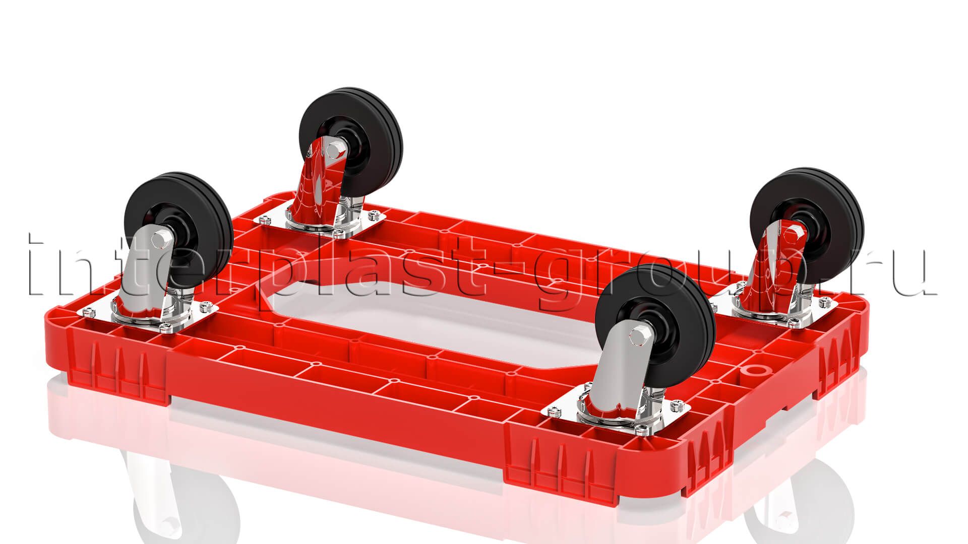 Тележка пластиковая с отверстием без тормозов красная в Чебоксарах
