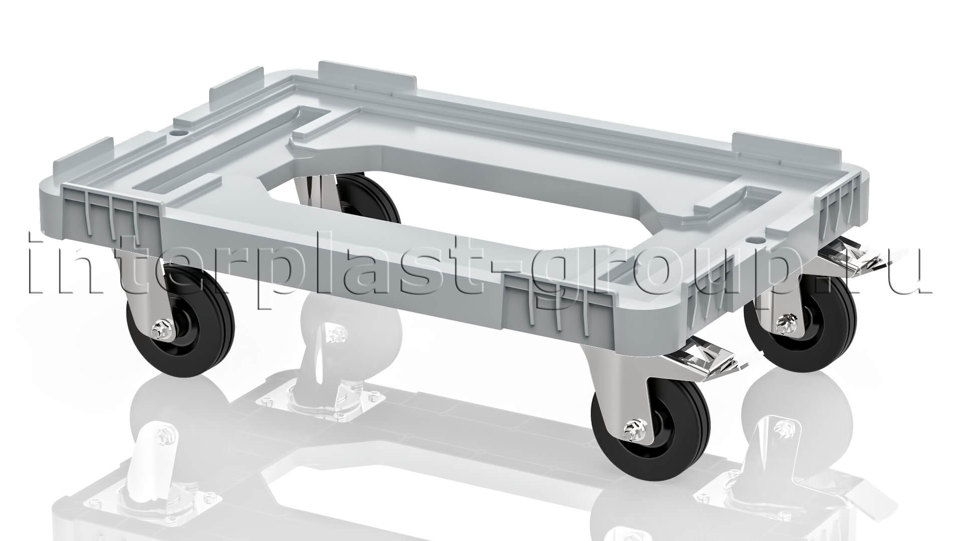 Тележка пластиковая с отверстием 2 колеса с тормозом серая в Чебоксарах